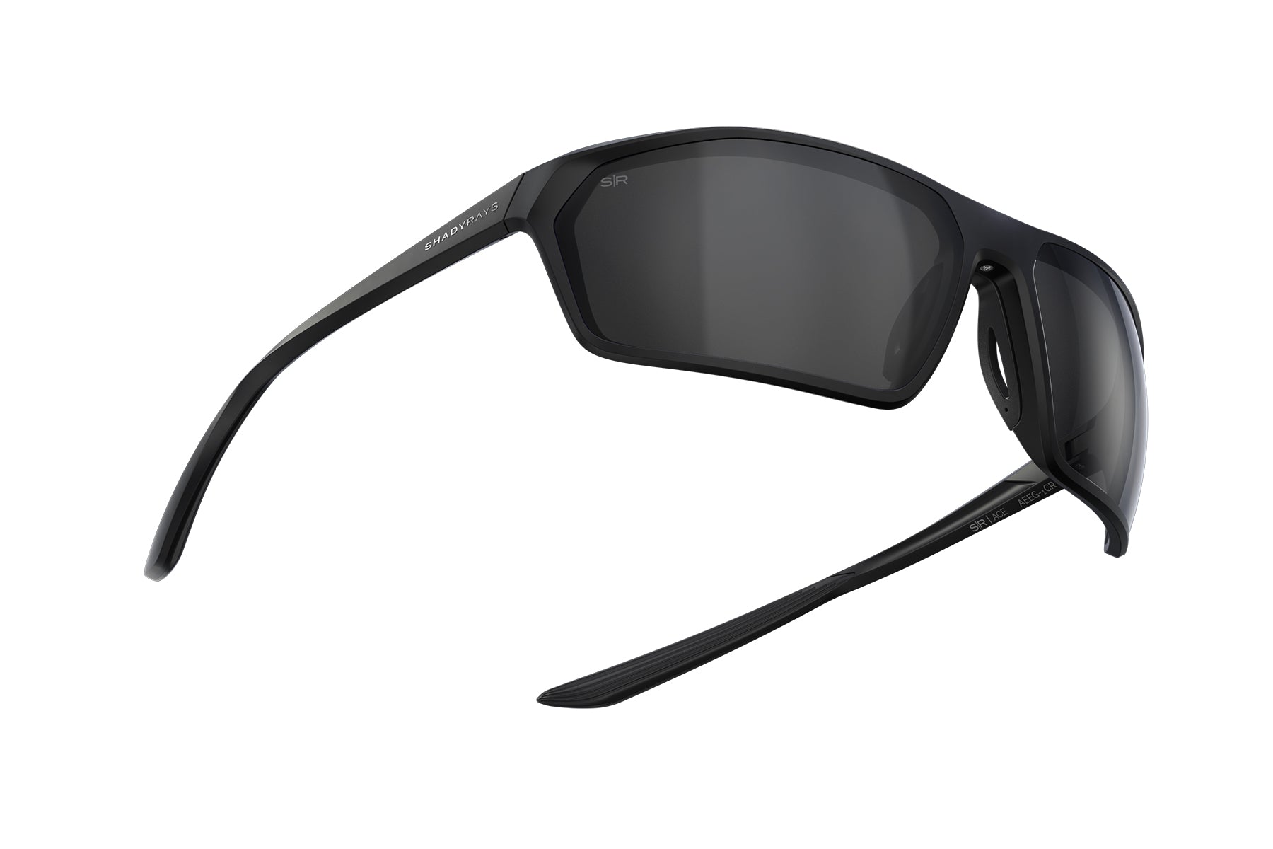 Lightweight sport wraparound design with flush mount lenses for full peripheral vision and unobstructed views.