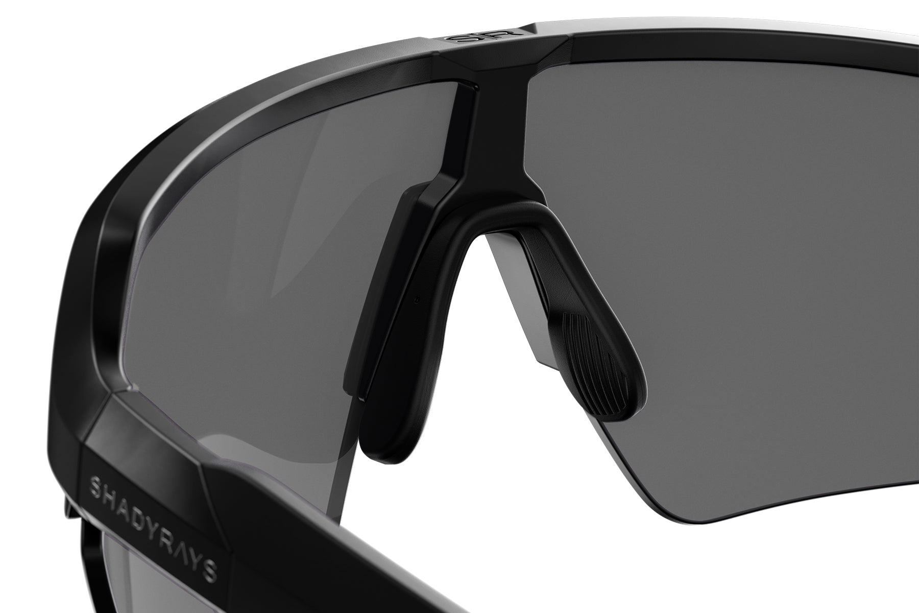 No-slip fit- rubber adjustable nose pad with air-flow sweat channels, and dual injected rubber temple tips.