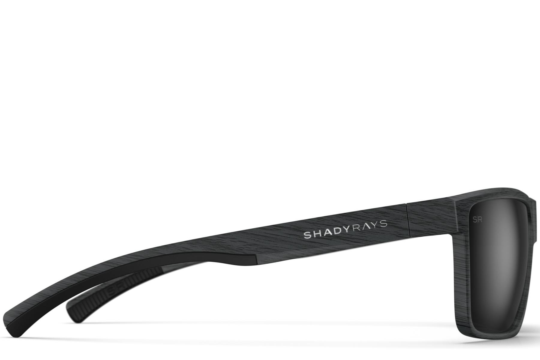 Matte black wood grain pattern TR-90 frame with raised logos.