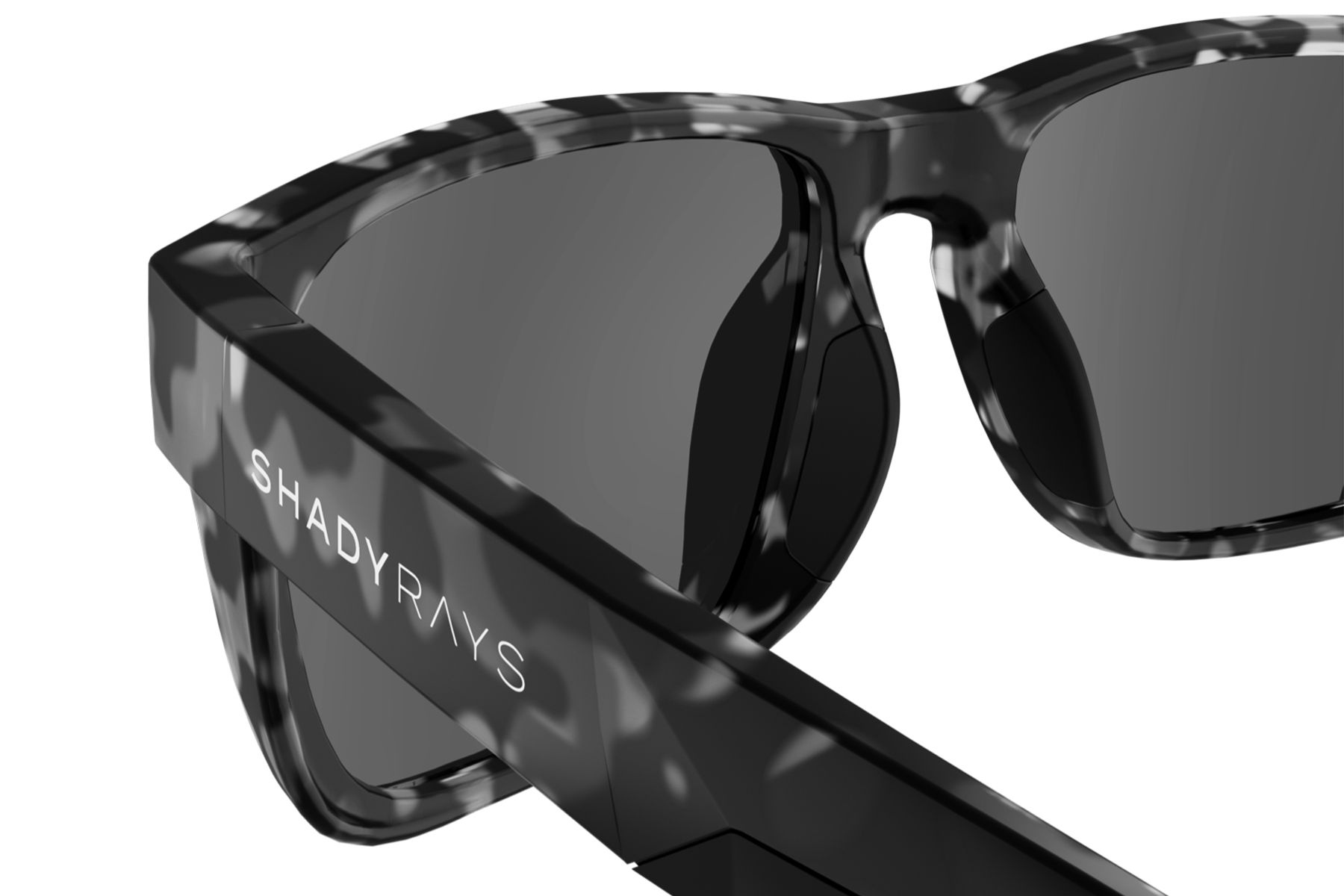 Color-enhancing premium semi-polarized black lenses with grey tint: 100% UV protection / shatter-resistant / anti-scratch / premium hydrophobic and oleophobic coatings / VLT 16%